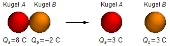 Wenn die Kugeln A und B miteinander in Kontakt gebracht werden, verteilt sich die Gesamtladung gleichmäßig auf beide Kugeln. Die Endladung jeder Kugel entspricht dem Mittelwert der beiden Anfangsladungen.