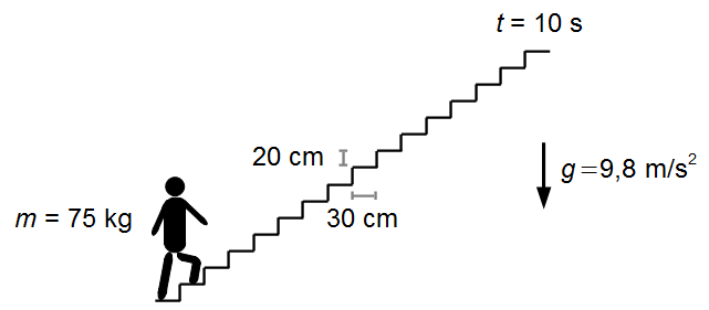 - Zeit für das Hinaufsteigen der Treppe: t = 10 s;