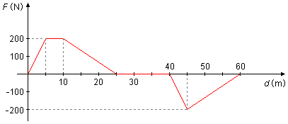 Ein Körper bewegt sich auf einer geradlinigen Bahn. Das Diagramm der Kraft, die auf den Körper wirkt, in Abhängigkeit von der zurückgelegten Strecke ist in der folgenden Abbildung dargestellt.