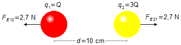 La forza FE12 è la forza di repulsione sulla sfera 1 dovuta alla sfera 2, mentre la forza FE21 è la forza di repulsione sulla sfera 2 dovuta alla sfera 1. I moduli di queste forze sono uguali a FE (Figura 1).