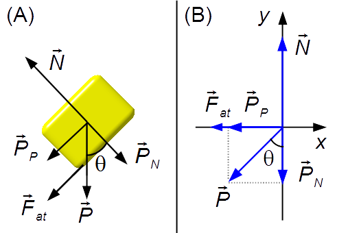 - \( {\vec F}_{at} \): forza di attrito tra il blocco e il piano.