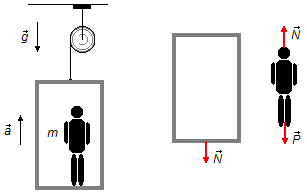 Un uomo di massa m = 70 kg si trova in un ascensore, il quale si muove con accelerazione