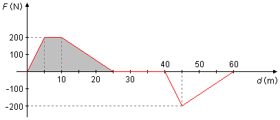 Un corpo si muove lungo una traiettoria rettilinea; il grafico della forza che agisce sul corpo in funzione della distanza percorsa è mostrato nella figura seguente.