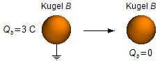Wird Kugel B mit der Erde verbunden., so entlädt sie sich vollständig, und ihre Ladung wird null.