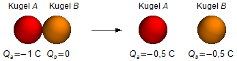 Wenn die Kugeln A und B miteinander in Kontakt gebracht werden, verteilt sich die Gesamtladung gleichmäßig auf beide Kugeln. Die Endladung jeder Kugel entspricht dem Mittelwert der beiden Anfangsladungen.