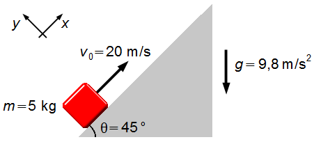 Ein Block mit der Masse 5 kg wird mit einer Anfangsgeschwindigkeit von 20 m/s in aufsteigender Richtung auf
