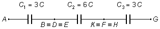 Die drei Kondensatoren zwischen den Punkten K und G, F und G sowie H und G