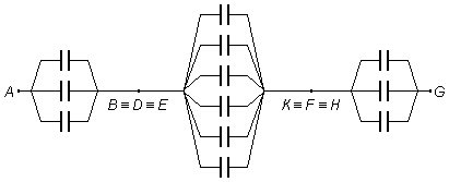 befinden sich sechs gleiche Kondensatoren parallel. Wir nennen die Ersatzkapazität zwischen diesen Punkten