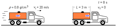 the vehicle takes 8 s to stop. Assuming the tank has a shape of a horizontal cylinder 3 m long and is filled