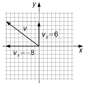 - Component of the vector in the x direction: vx=−8;