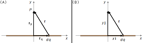 {\mathbf{E}=\frac{1}{4\pi \epsilon_{0}}\int{\frac{dq}{r^{2}}\;\frac{\mathbf{r}}{r}}}
