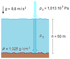 - Densidad del agua de mar: ρ = 1,025 g/cm3;