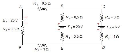 En el circuito siguiente, determinar las corrientes en las ramas y sus verdaderos sentidos.