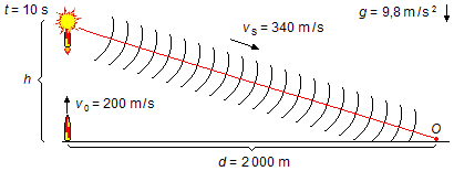 explode. Um observador está localizado a uma distância de 2000 metros na mesma horizontal do ponto de