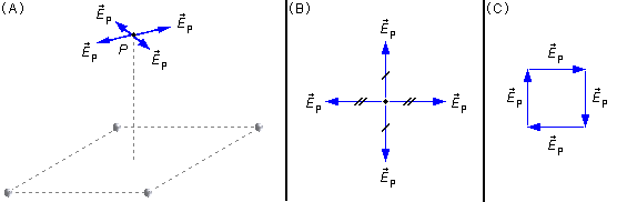 (Figura 4-C), temos que estes quatro vetores campo elétrico formam uma poligonal fechada, portanto a