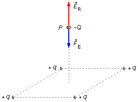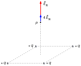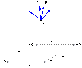 Por simetria do problema, cada carga do quadrado vai gerar um campo elétrico de mesma intensidade em