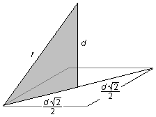 r^{2}=d^{2}+\left(\frac{d\sqrt{2\;}}{2}\right)^{2}\\r^{2}=d^{2}+\frac{2d^{2}}{4}\\