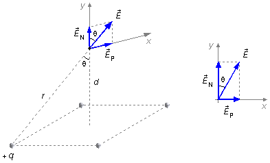 Esse campo elétrico deve ser decomposto nas direções paralela ao plano das cargas