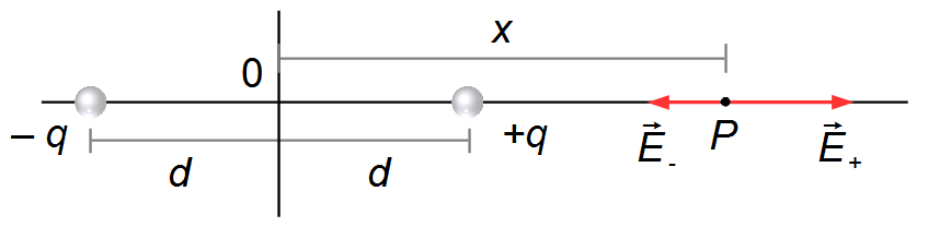 E=k_{0}\frac{q}{(x-d)^{2}}-k_{0}\frac{q}{(x+d)^{2}}\\[5pt]