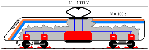Uma locomotiva elétrica de 100 toneladas é impulsionada por quatro motores elétricos alimentados com