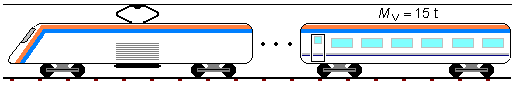 Desta massa total, temos que 100 000 kg representam a massa da própria locomotiva, então sobra para os vagões