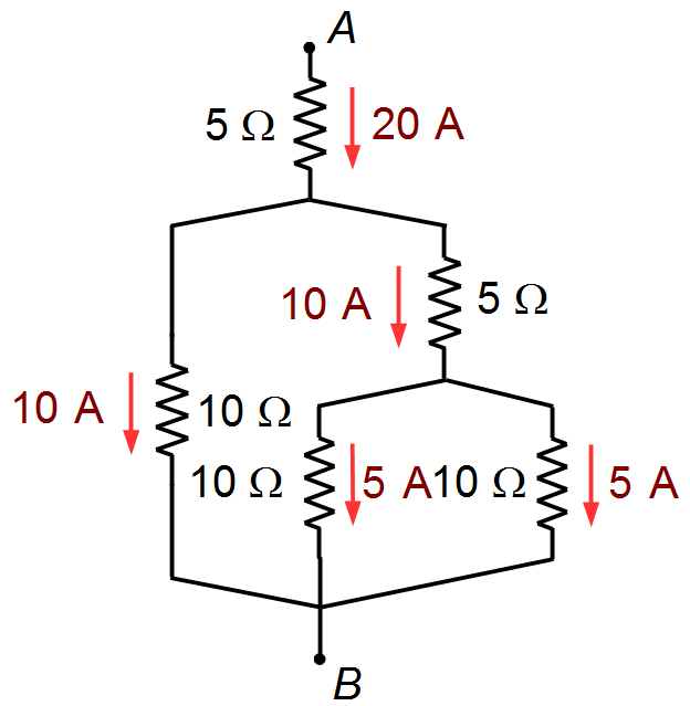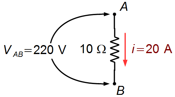 - Diferença de potencial entre A e B: VAB = 220 V.