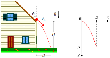 Adotamos um sistema de referência com origem no ponto de onde a bola cai do telhado com o eixo