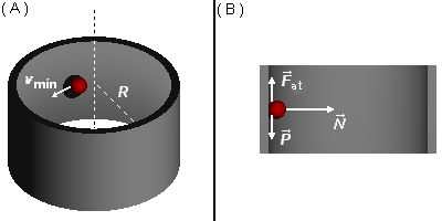 apontando para baixo, a força de atrito entre a esfera e a parede do cilindro