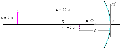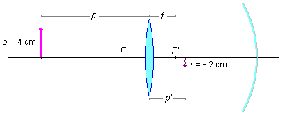 - Comprimento da imagem: i = −2 cm;