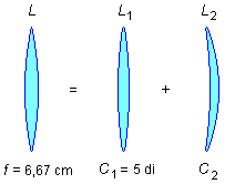 Numa associação de lente, a convergência é dada pela soma das convergências