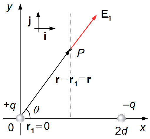 O vetor r1 vai da origem até a carga +q, como a carga está localizada