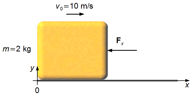 Um corpo, de massa igual à 2 kg com velocidade inicial de 10 m/s no sentido positivo, está sob a ação