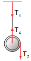 m_{2}g\;\mathbf{j}-T_{2}\;\mathbf{j}=0