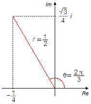 |z|=\sqrt{\left(-{\frac{1}{4}}\right)^{2}+\left(-{\frac{\sqrt{3}}{4}}\right)^{2}}\\[5pt]