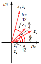 \frac{z_{1}}{z_{2}}=\frac{\sqrt{2}}{2}\;\left[\cos\left(\frac{3\pi -2\pi }{12}\right)+i\operatorname{sen}\left(\frac{3\pi-2\pi }{12}\right)\right]