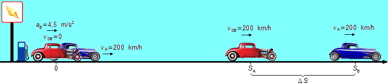 - Vitesse de la voiture A: vA = 200 km/h;