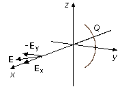 {\mathbf E=-{\frac{Q}{4\pi\epsilon_0a^2}}\;\mathbf j}