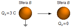 Quando la sfera B viene collegata a terra, si scarica e la sua carica diventa uguale a zero