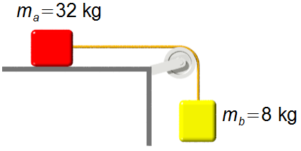 trascurabile senza attrito. Le masse di A e B valgono rispettivamente 32 kg e 8 kg.