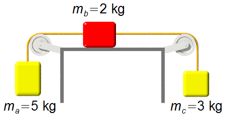 verticalmente. Le masse di A, B e C valgono rispettivamente 5 kg, 2 kg e 3 kg.
