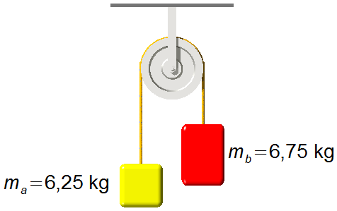 Una macchina di Atwood possiede masse ma = 6,25 kg e mb = 6,75 kg,