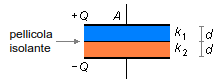 due isolanti con costanti dielettriche k1 e k2 e spessore d, come nella